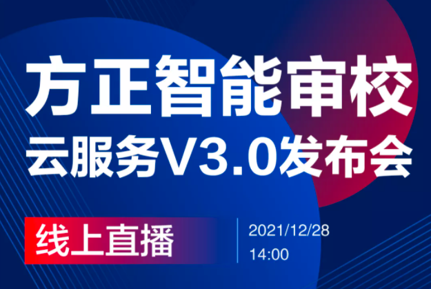 12月28日,“方正智能審校云服務(wù)V3.0新版本發(fā)布會”直播活動召開,方正智能審校V3.0正式發(fā)布。新版本致力于為用戶量身...